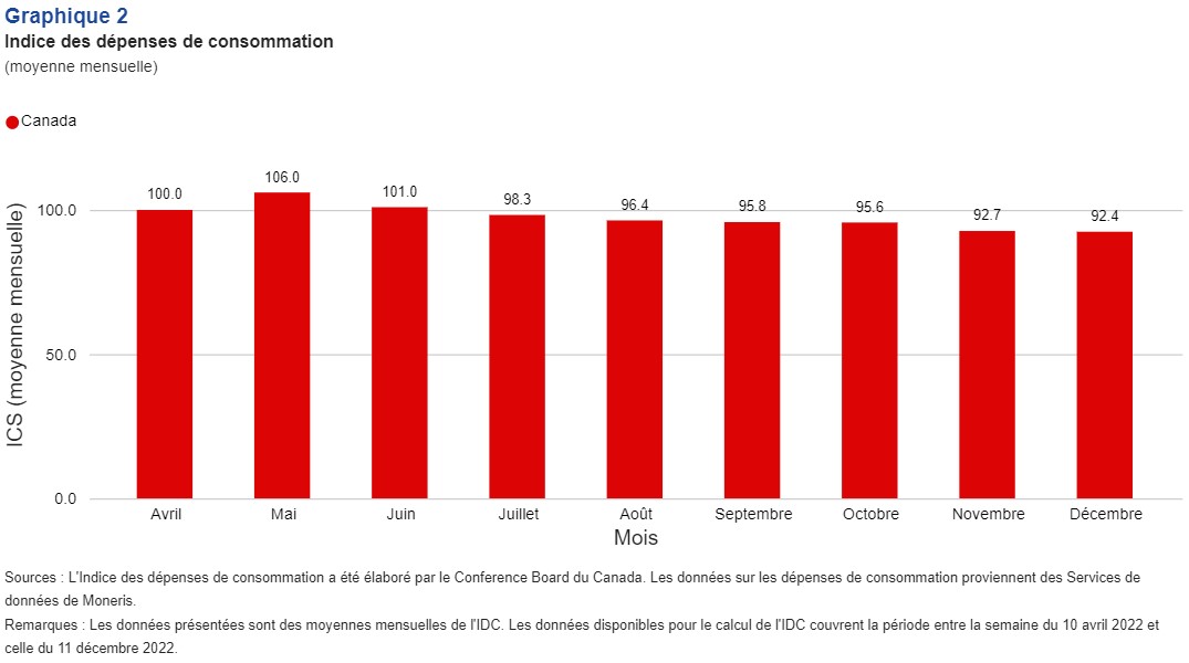Dans le cadre de notre récent partenariat avec le Conference Board du Canada, nous sommes ravis de présenter la rétroaction fiable suivante de son Index of Consumer Spending (ICS) (index de dépenses de consommation) qui est alimenté par les services de données de Moneris. La combinaison de nos données de pointe sur les dépenses de consommation qui proviennent des activités aux points de vente et de l’expertise du Conference Board du Canada fournit une perspective canadienne sur les tendances économiques.