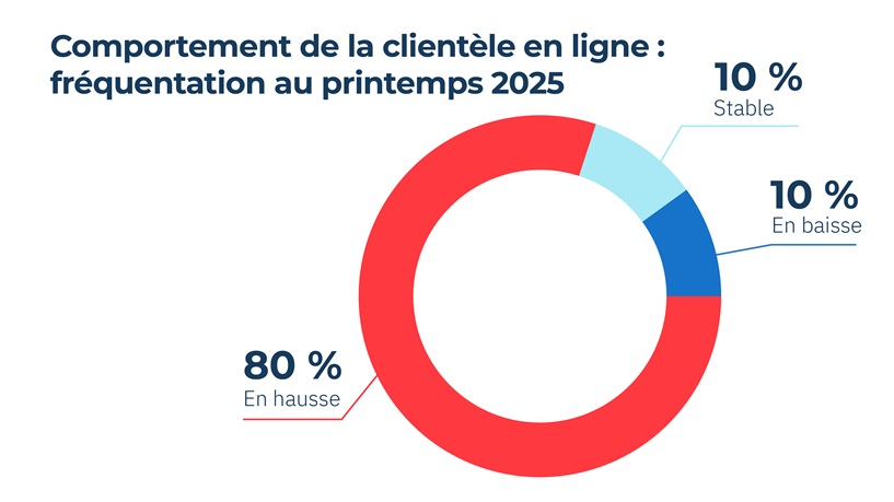 Les achats en ligne sont restés stables, 80 % des propriétaires de commerce de détail interrogés faisant état d’une augmentation du trafic et 77 % d’une hausse des ventes en ligne.