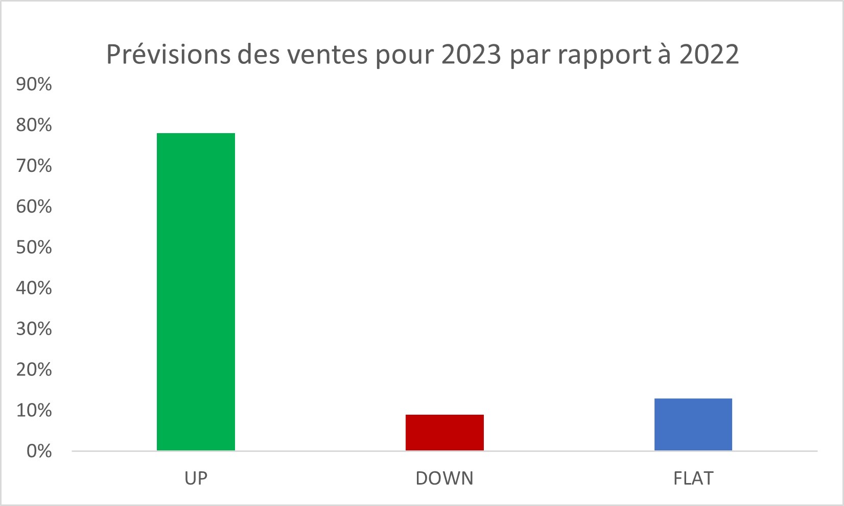 • 78 % prévoient des ventes plus élevées en 2023 qu’en 2022.