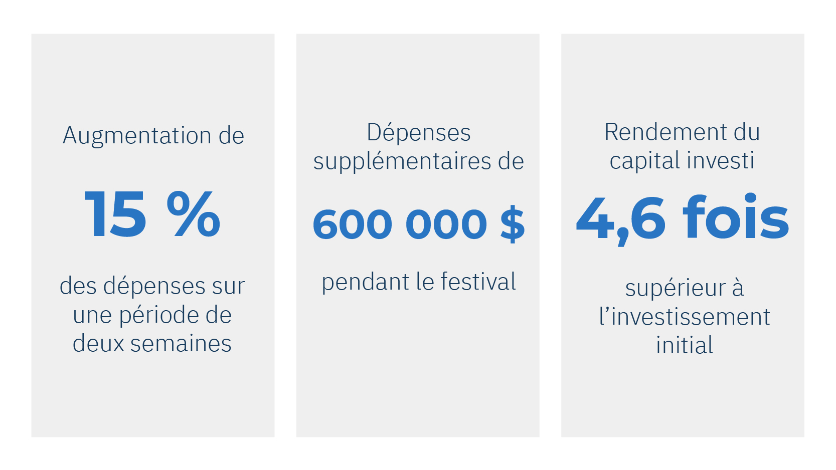 « Grâce aux services de données de Moneris, nous avons pu transformer une poignée de témoignages anecdotiques au sujet des retombées de notre festival en constats éloquents et étayés par des données qui ne laissent aucun doute quant à la valeur réelle de l’événement. »